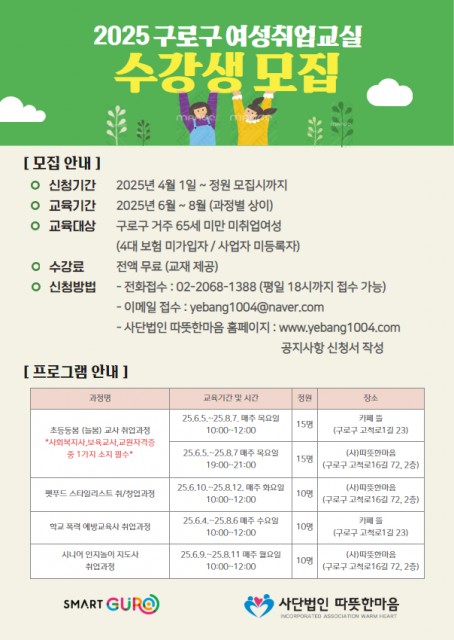2025 구로구 여성취업교실 참여자를 모집합니다.